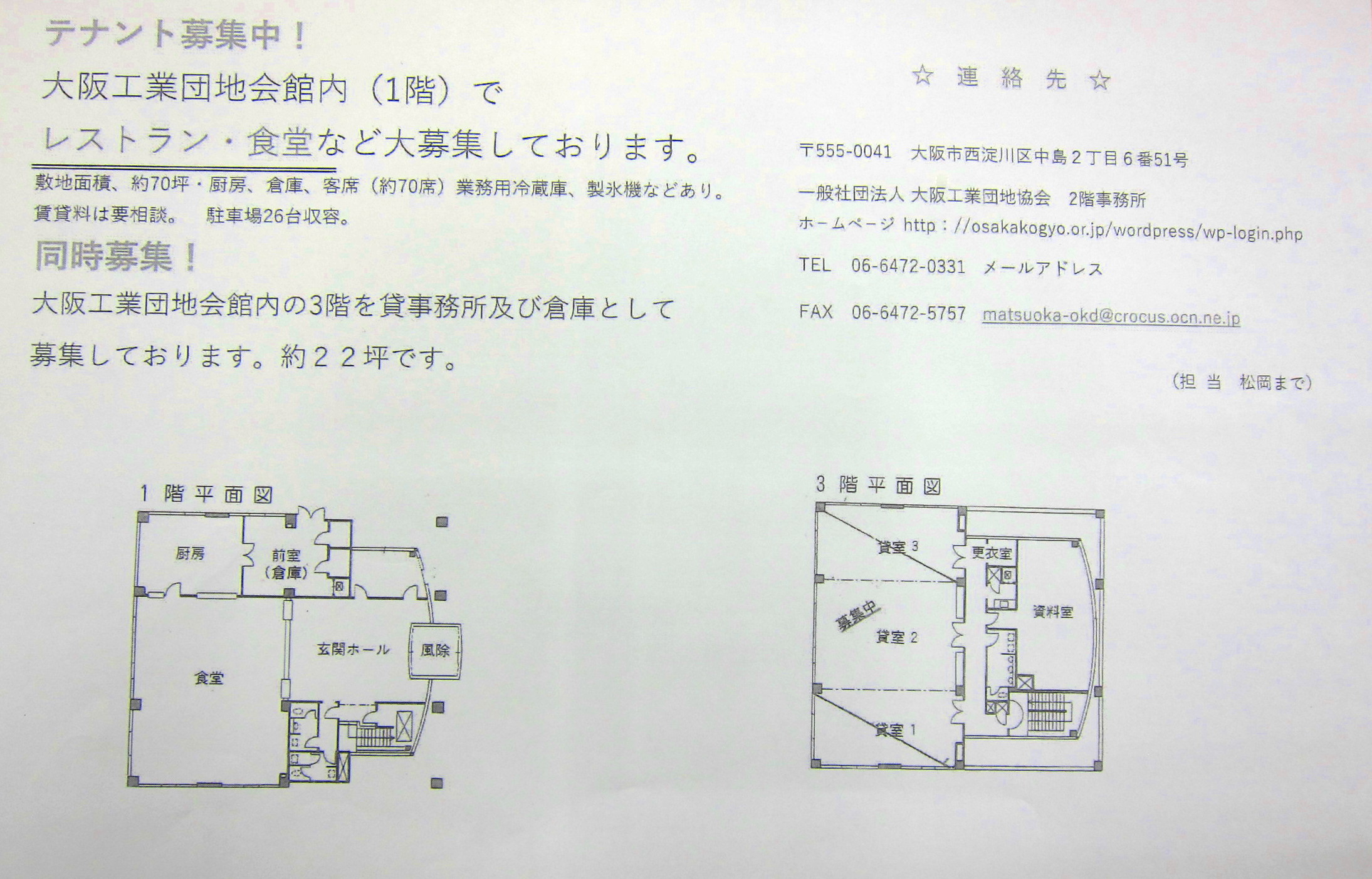 会館1階テナント及び3階貸事務所募集